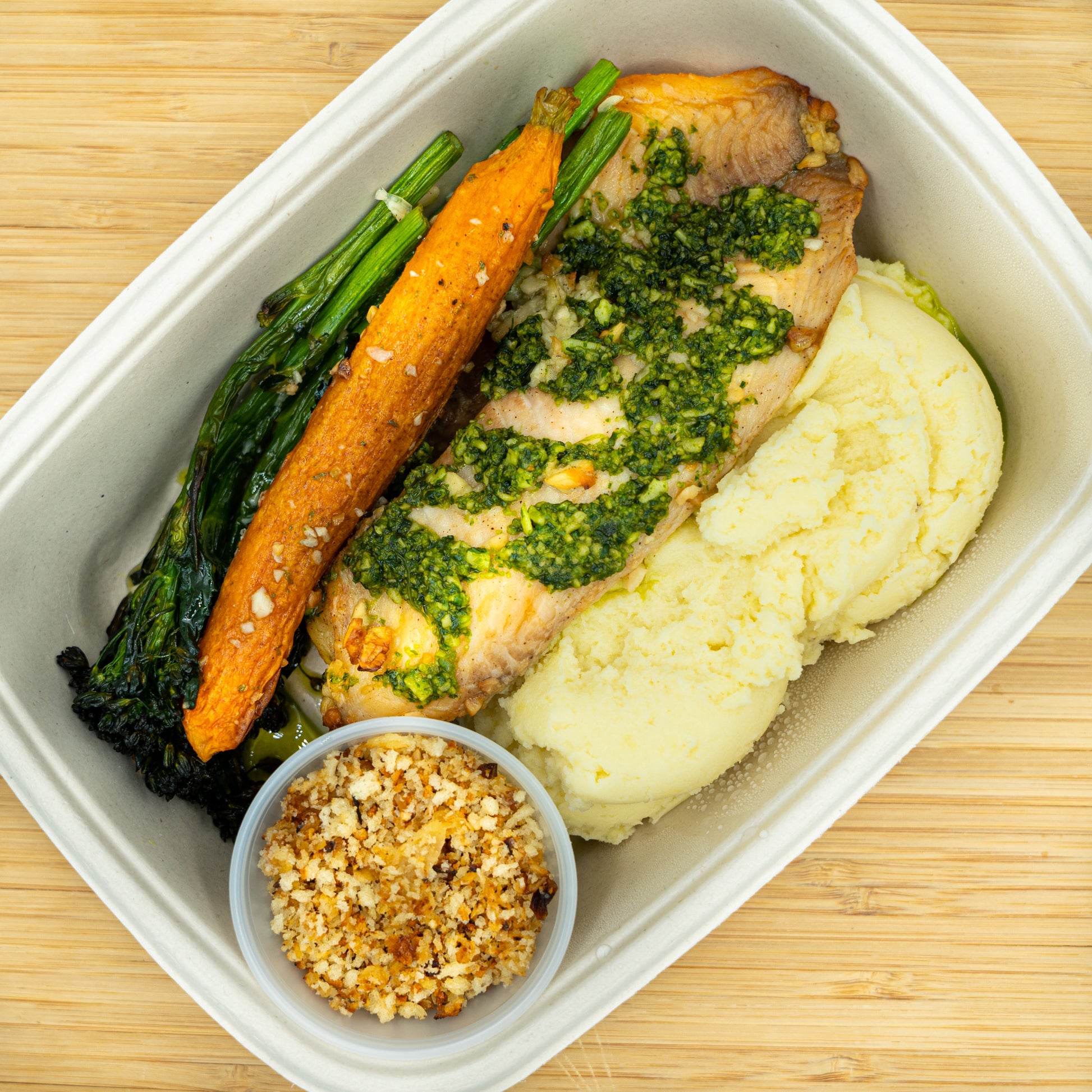 Farofa Panko: panko, cebola, manteiga, sal e pimenta.